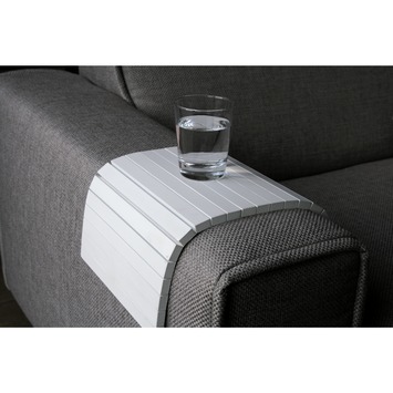 Maak een dienblad van de armleuning van je bank of fauteuil. Dit Woood dienblad is flexibel en leg je daarom zo over de leuning neer. Handig voor een avondje bank hangen, je hebt je drankje en snacks binnen handbereik! Dat is echt een groot voordeel.